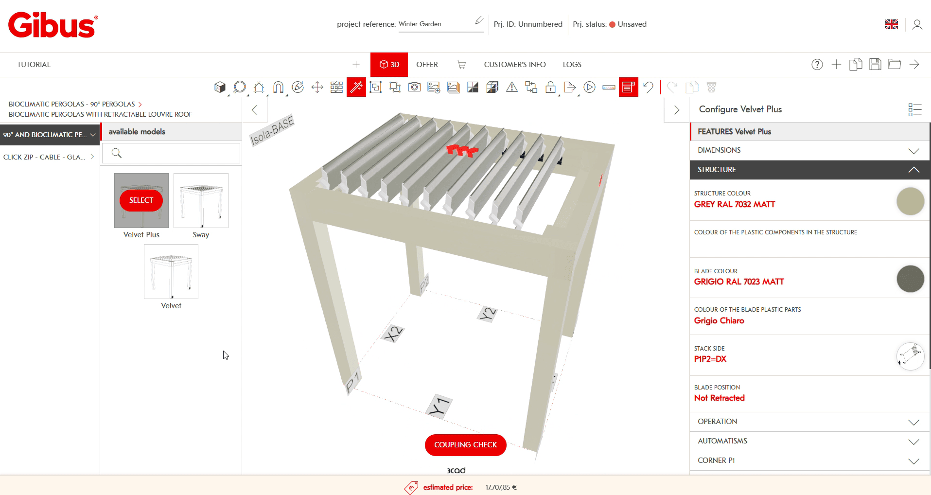 Between 2013 and 2014, GIBUS saw product complexity and dealer demand rising. The company and identified the need for an advanced graphic configurator to improve design accuracy, speed up quotations, and provide modern tools to its dealer-installer ecosystem. The configurator GIBUS was using was not up to the task. It wasn’t cloud-based or flexible enough, it struggled with stability and speed, and it raised scalability concerns as the user base grew.